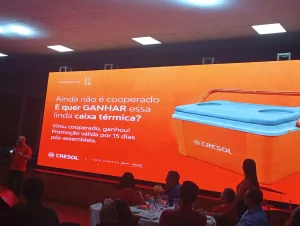 Ao final da assembleia, os associados e convidados participaram de um jantar de confraternização. Como forma de agradecimento pela presença e participação, os cooperados receberam um brinde especial: uma caixa térmica entregue pela cooperativa.